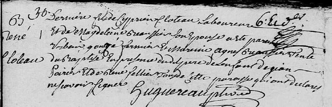 Père : CLOTEAU René ( (c) 1730 - 1788 )