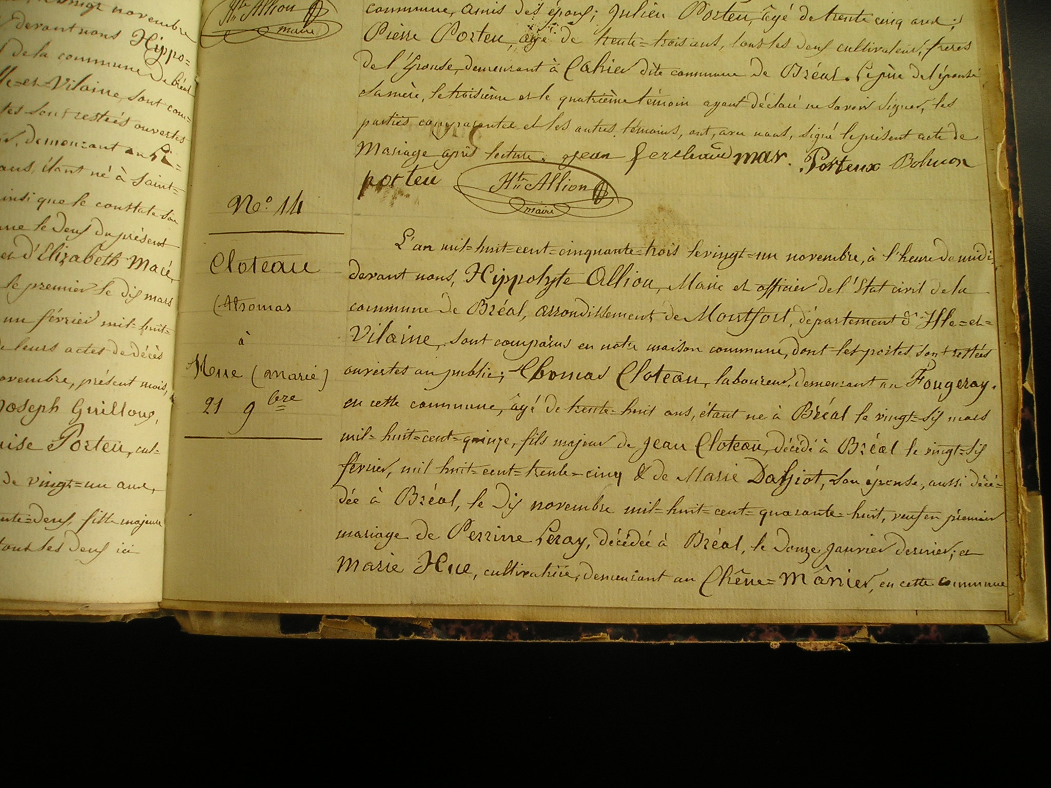 Mariage : 21 novembre 1853 à Bréal-Sous-Montfort 35310