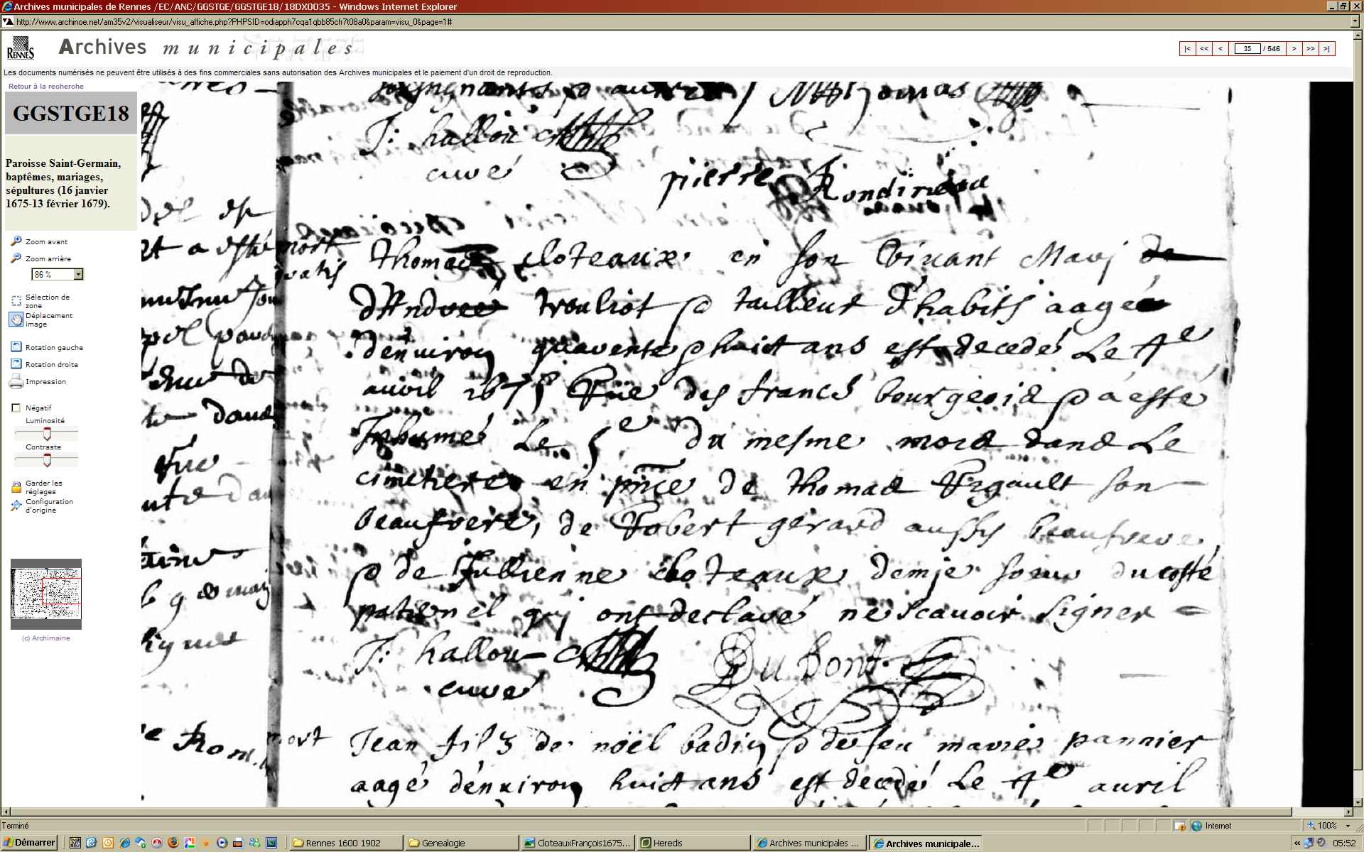 ou CLOTEAUX à son mariageDécès : 4 avril 1675 à Rennes 35000 Rue des Francs Bourgeois