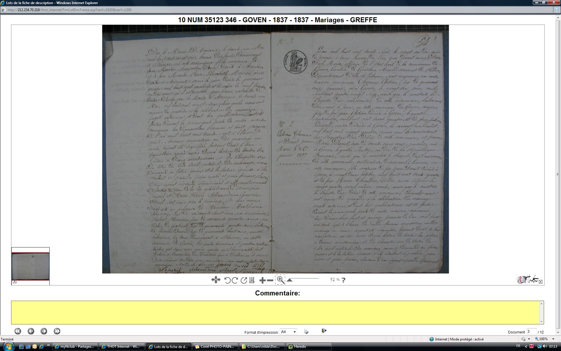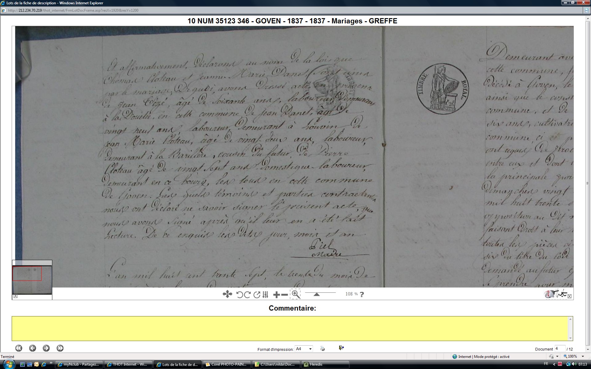 Mariage : 26 janvier 1837 à Goven 35580