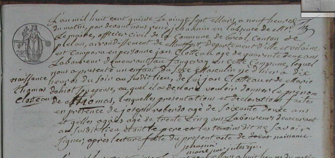 Naissance : 18 mars 1754 à Guignen 35580 Cohignac
