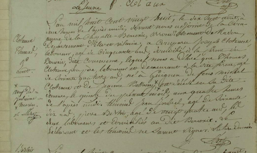 Domicile : 1788 à Guignen 35580 Cohignac Décès : 15 août 1828 à La Chapelle-Bouëxic 35330