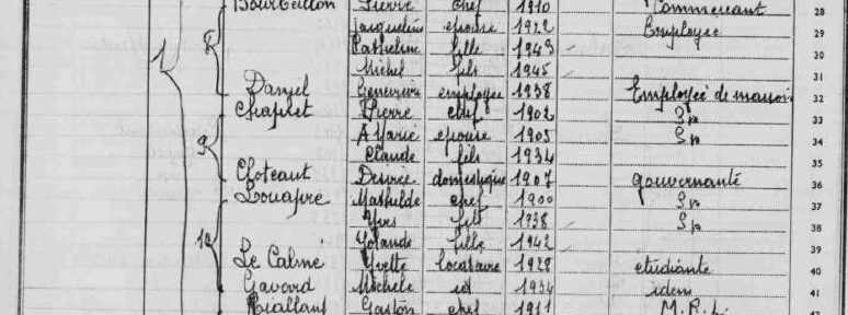 Naissance : 1907 Domicile : 1954 à Rennes 35000 1 Rue Joffre