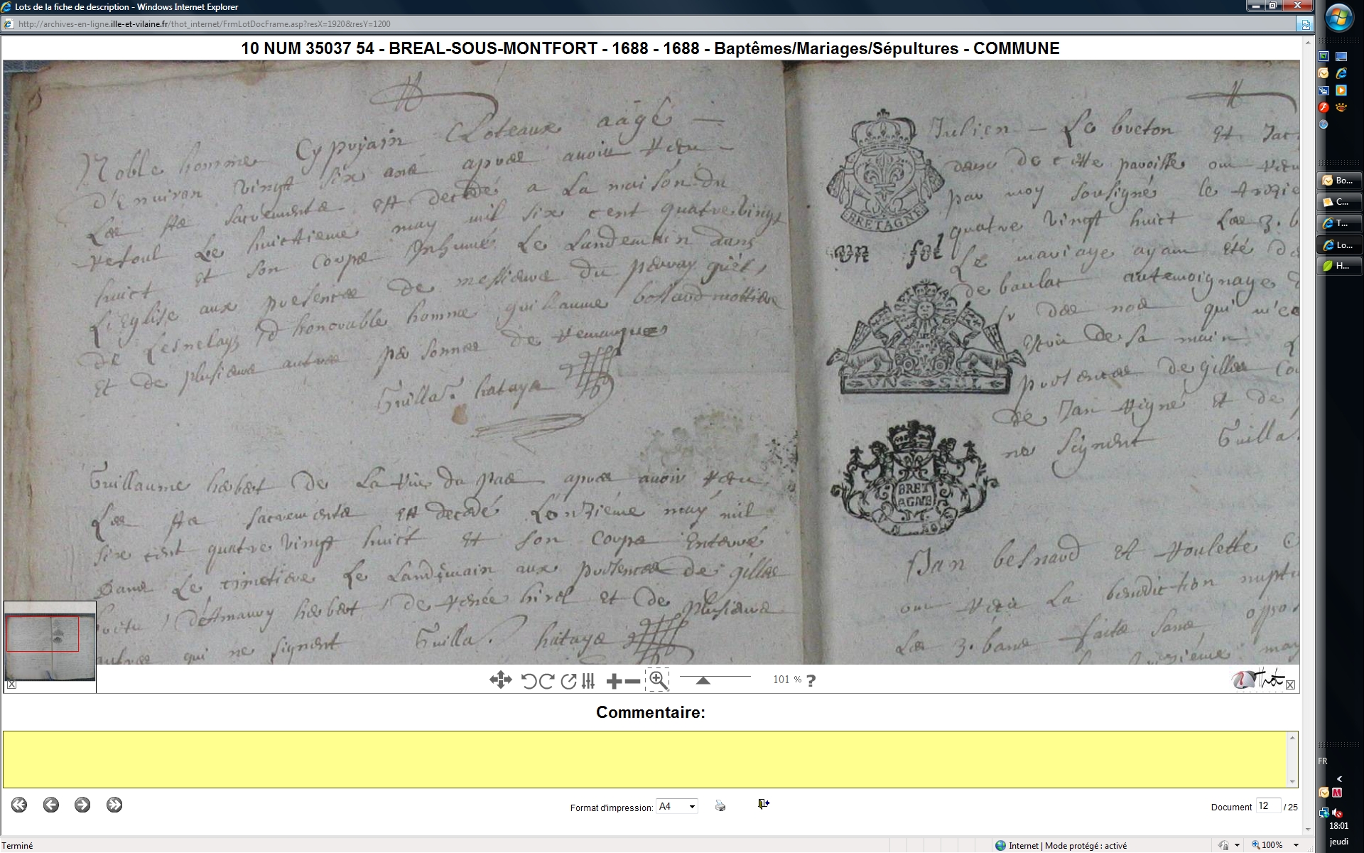 Naissance : 12 novembre 1660 à Bréal-Sous-Montfort 35310