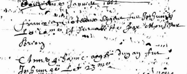 Naissance : Inhumation : vers 20 janvier 1662 à Rennes 35000 Saint Sauveur