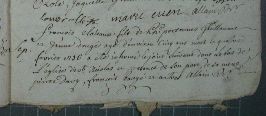 Père : CLOTEAUX André ( 1691 - 1761 )
