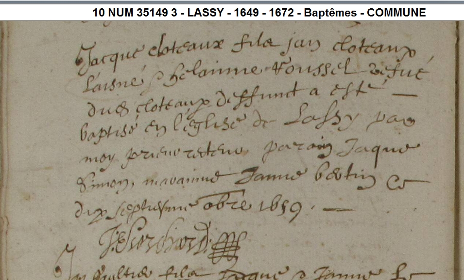 Père : CLOTEAUX Jean ( < 1639 - <> 1659 & 1659 )
