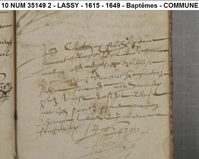 Naissance : avant 1629 à Lassy 35580 Décès : après 1648 à Lassy 35580