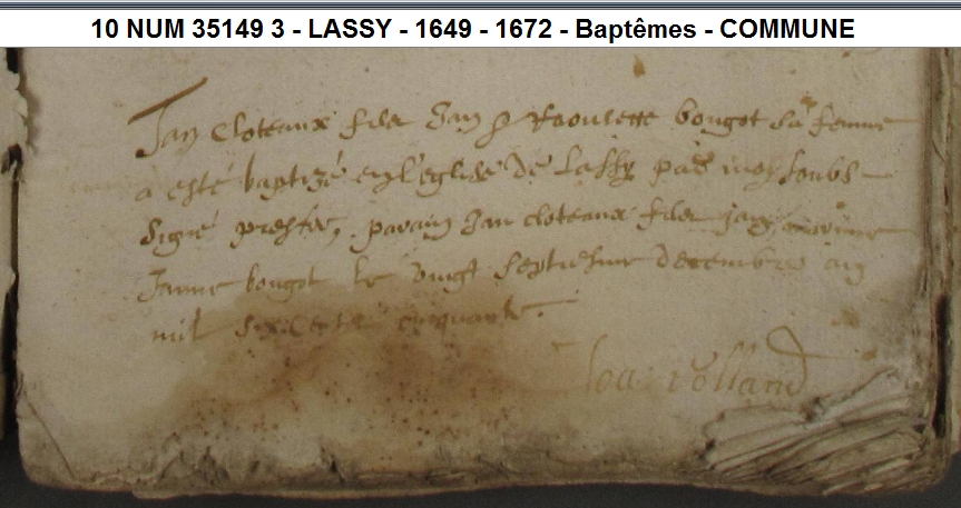 Autre enfant : CLOTEAUX Julien ( < 1673 - > 1683 )