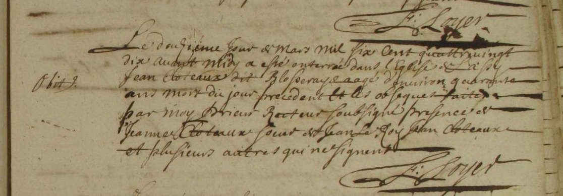 ou CLOTTEAUXDomicile : entre 1675 et 1676 à Guignen 35580 Ville Décès : après 1676