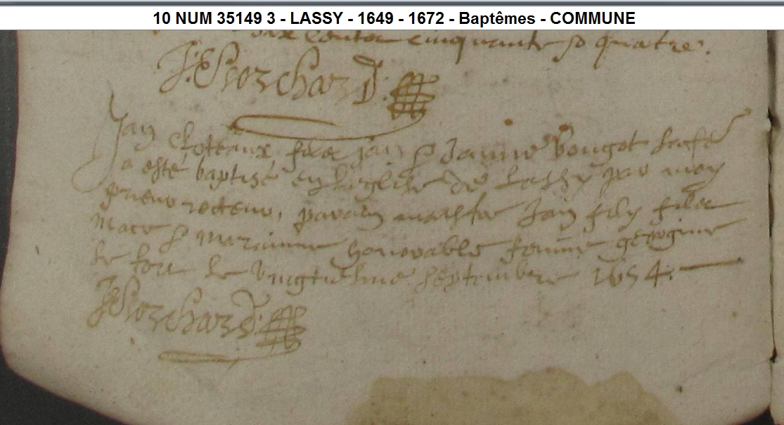 Père : CLOTEAULX François ( 1626 - > 1660 )