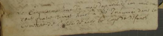 Décès : 15 janvier 1710 à Lassy 35580 Village de la touchette