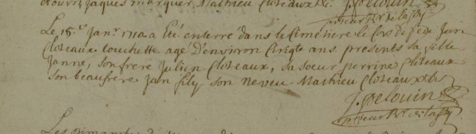 Autre enfant : CLOTEAUX Guillemette ( < 1700 - 1705 )