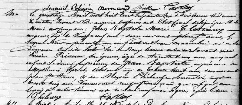 Notes : Époux de CLOTEAUX Valentine Jeanne Marie