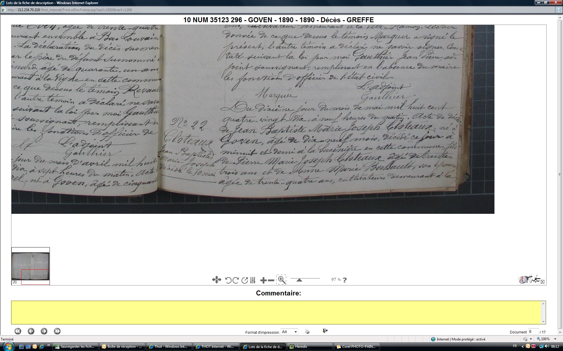 Présents : CLOTEAUX Jean Baptiste, 36 ans