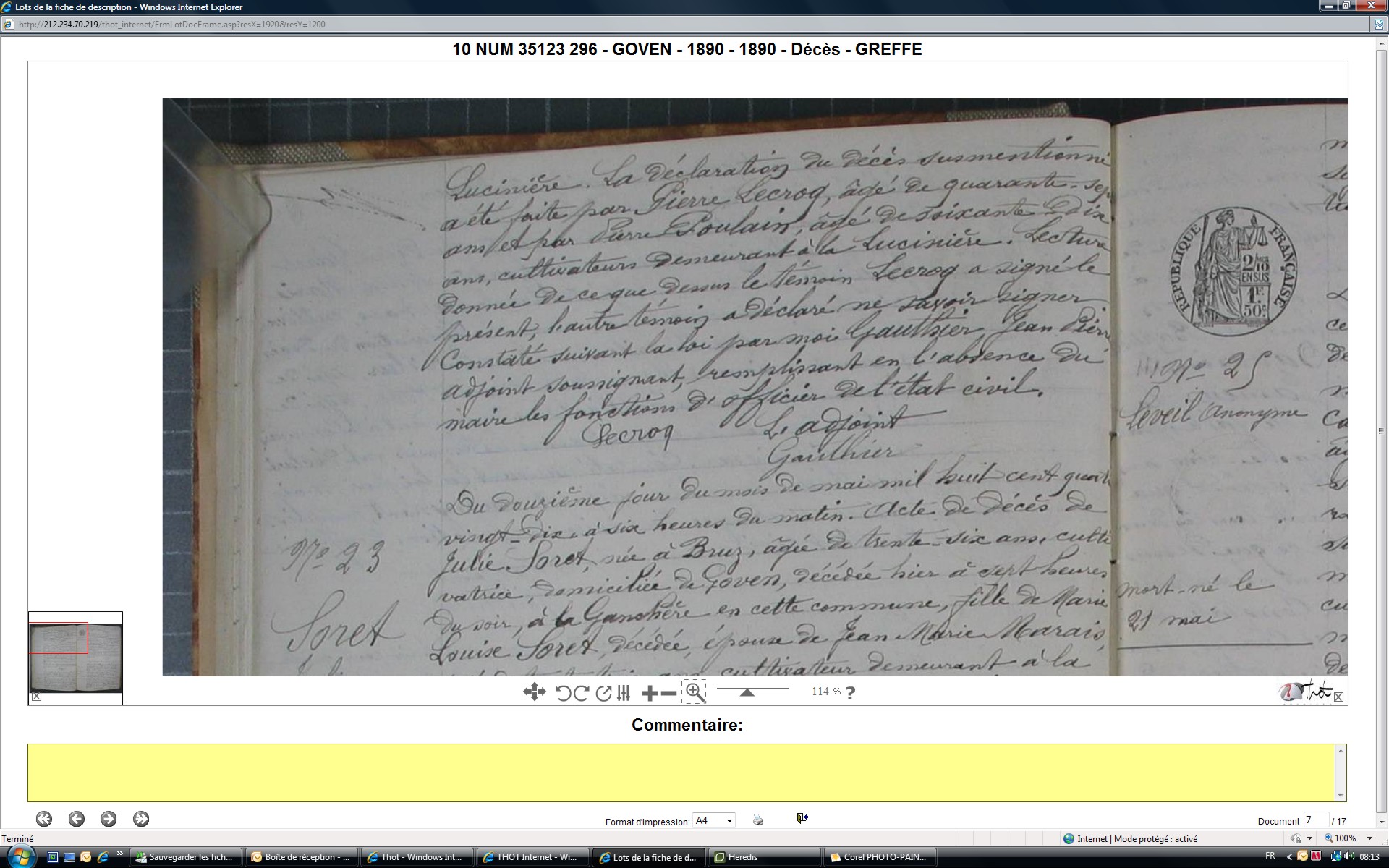 Notes : veuve CARDINAL Pierre Marie