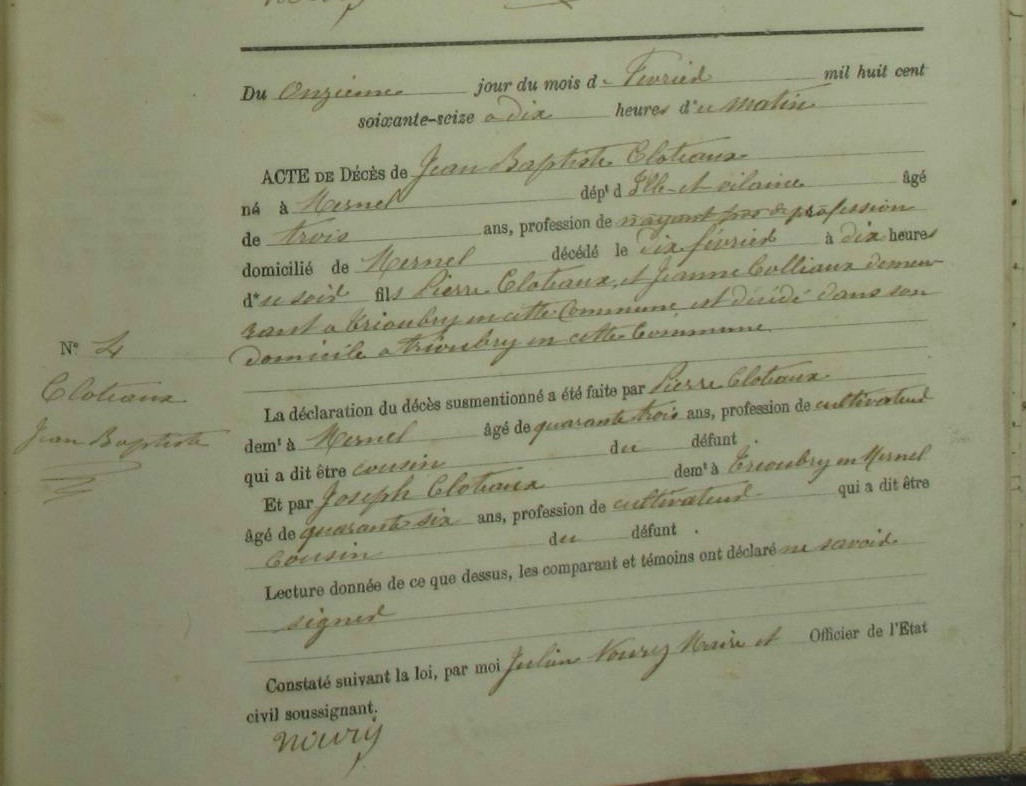 Enfant : CLOTEAUX Jean Baptiste ( 1866 - 1866 )