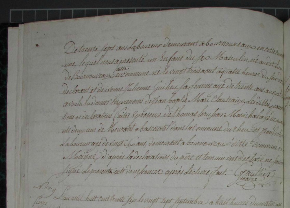 Présents : Jean Marie Cloteaux, 40 ans, laboureur au Coudray