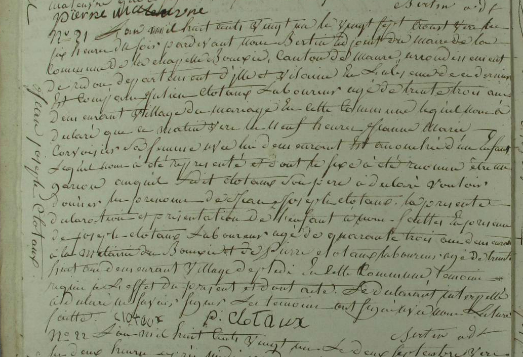 Père : CLOTEAUX Jean (Guillaume) ( (c) 1775 - 1826 )