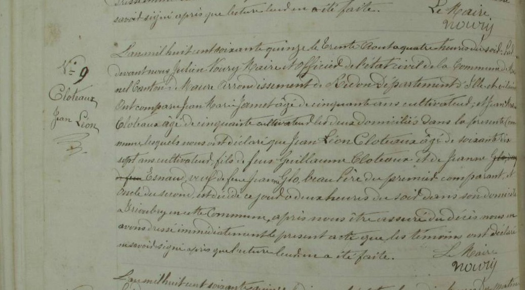 Décès : 30 août 1875 à Mernel 35330 Triouby