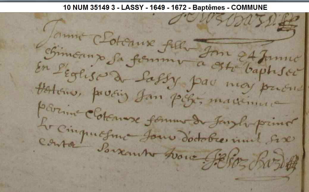 Père : CLOTEAUX Bertrand ( 1627 - <> 1663 & 1674 )