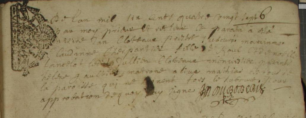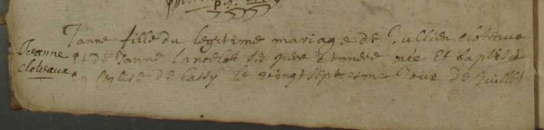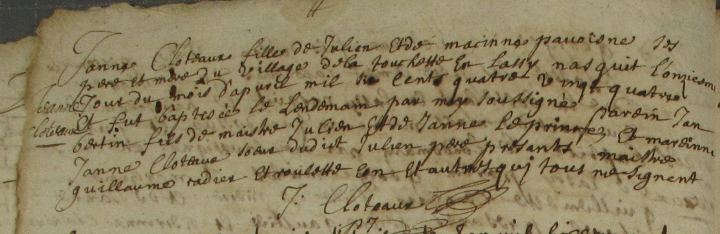 Père : CLOTEAUX Julien ( 1658 - <> 1719 & 1721 )