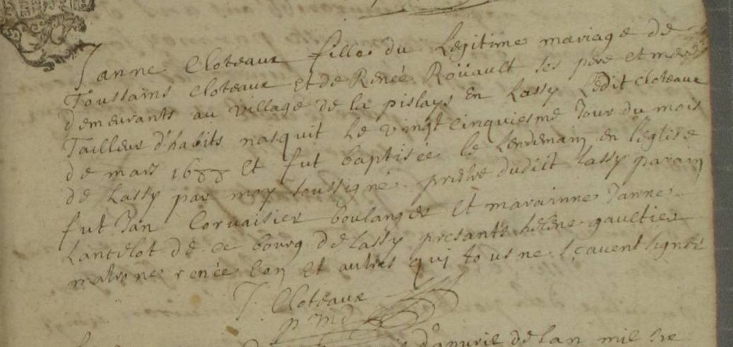 Père : CLOTEAUX Pierre ( < 1672 - > 1686 )