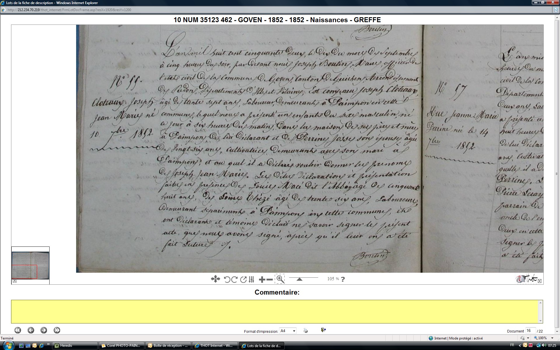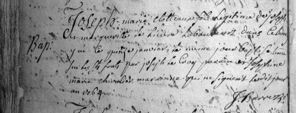 Joseph Marie CLOTTEAUX à sa naissance