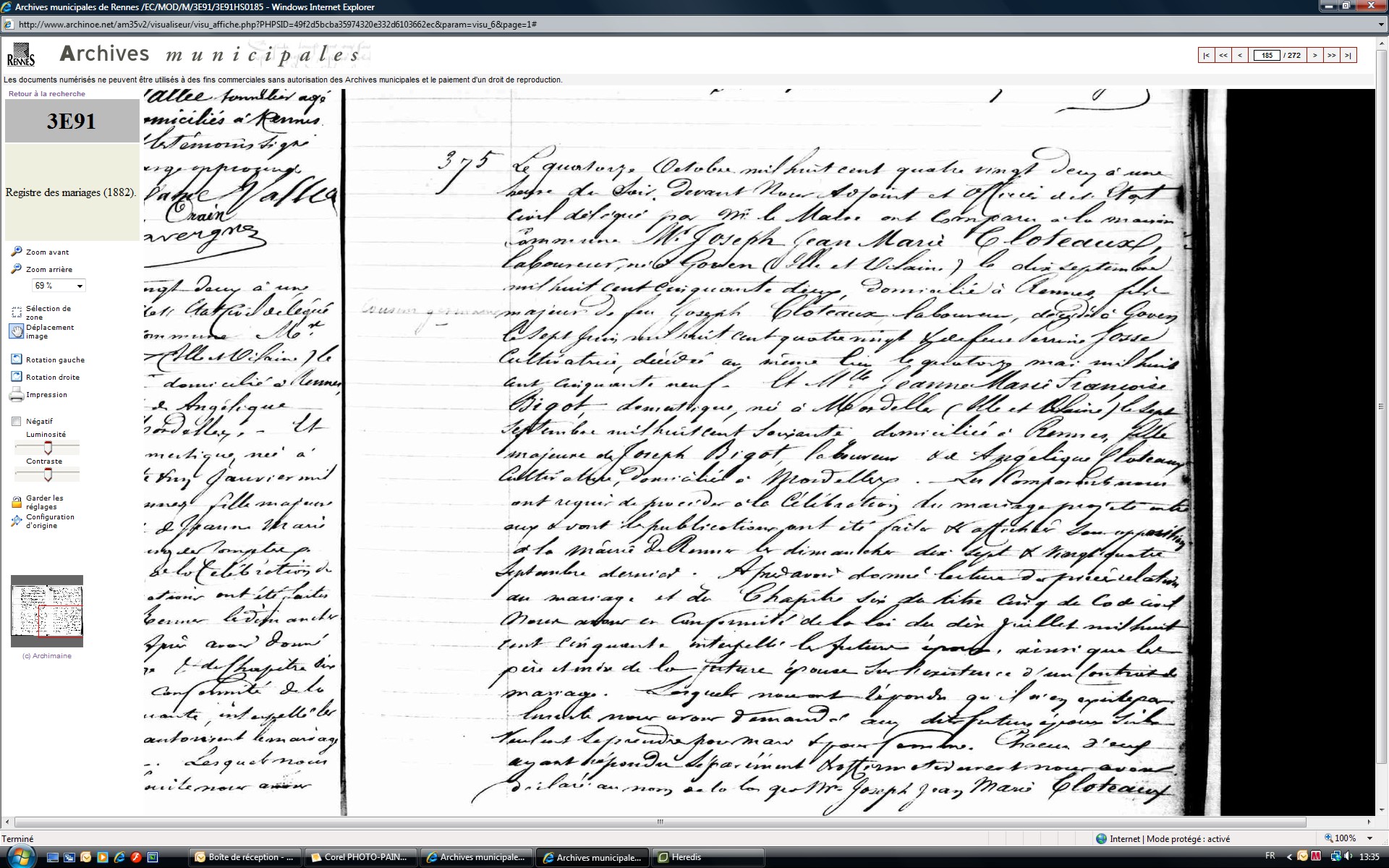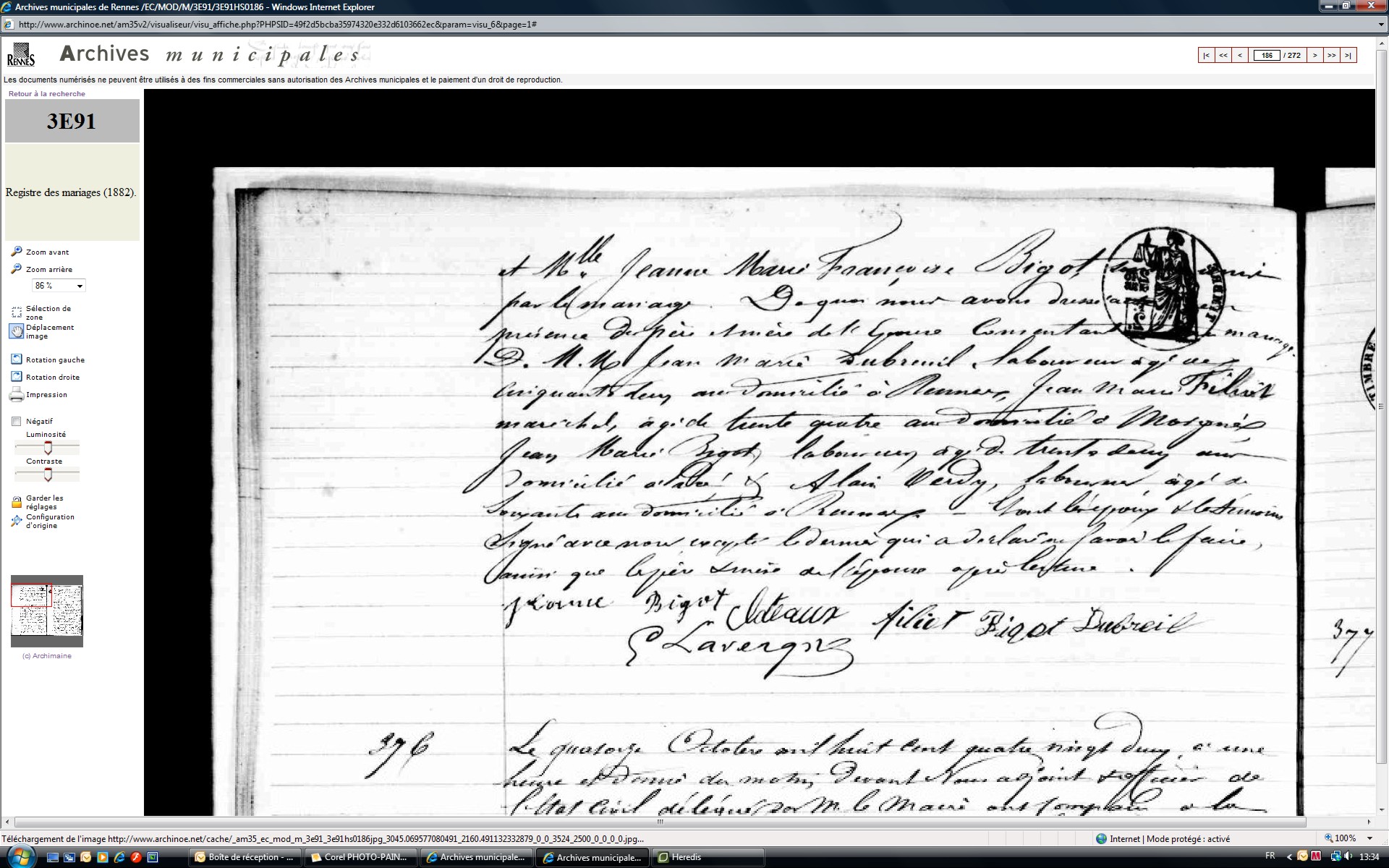 Mariage : 14 octobre 1882 à Rennes 35000