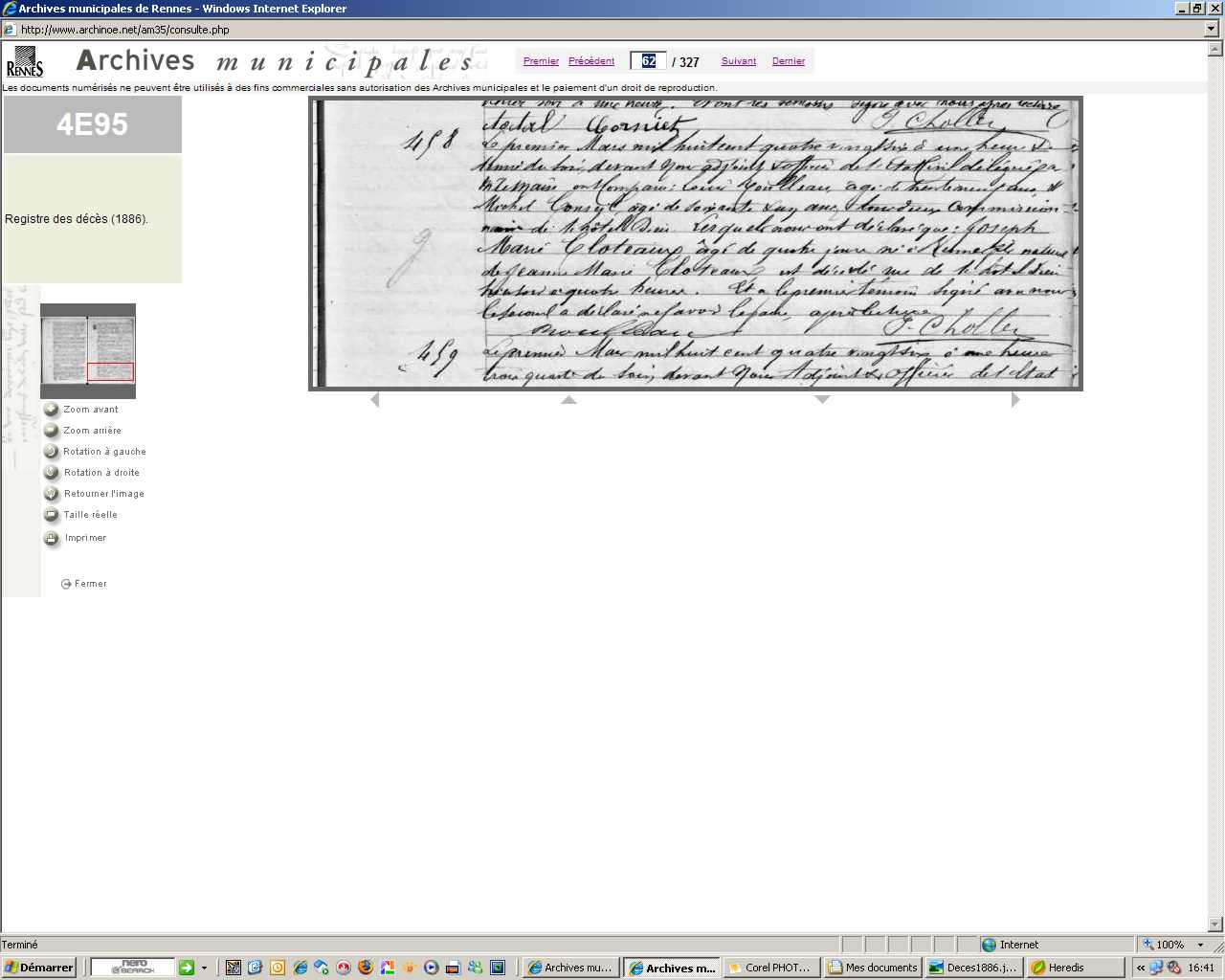 Décès : 28 février 1886 à Rennes 35000 Hotel Dieu