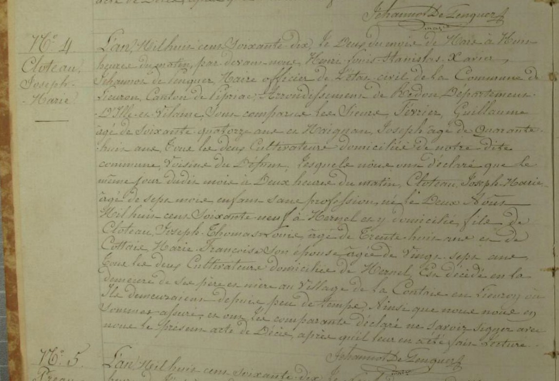 Décès : 9 octobre 1872 à Goven 35580 Lucinière
