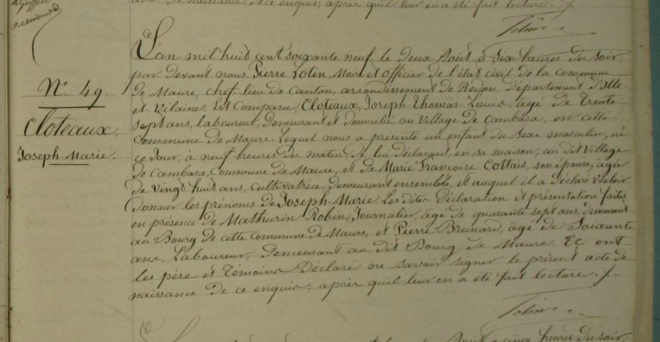 Présents : CLOTEAUX Joseph, 29 ans, fils