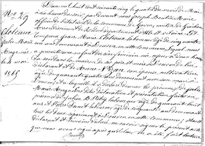 Père : CLOTEAUX Jean-Marie ( (c) 1818 - 1860 )