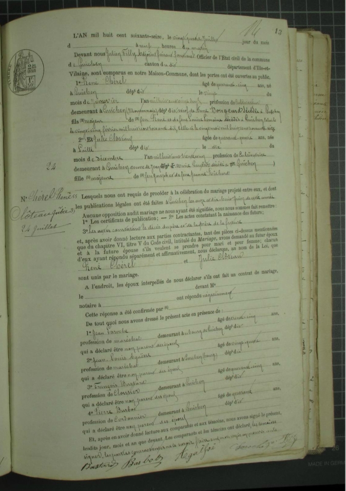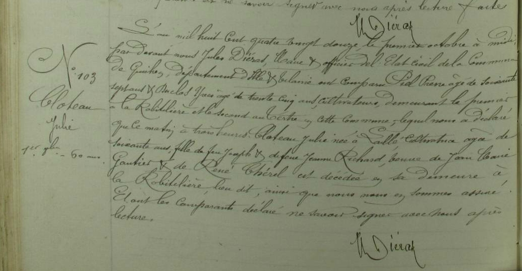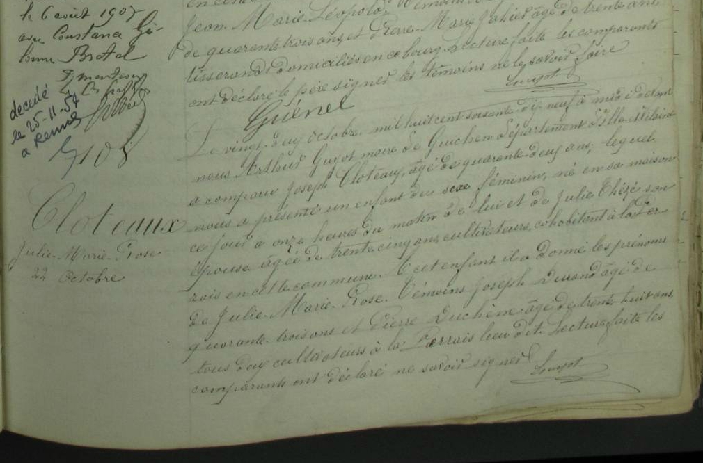 Décès : 1er octobre 1892 à Guichen 35580 La Robitilière