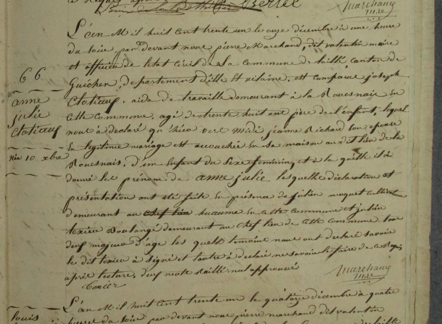 Naissance : calculée 1801 à Guipry 35480 Décès : 21 août 1845 à Rennes 35000 Hôpital Saint Yves