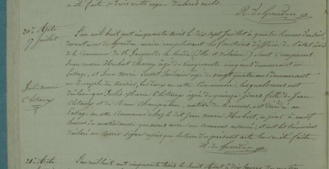 Naissance : vers 2 juillet 1853 à Rennes 35000 Décès : 17 juillet 1853 à Saint-Jacques-De-La-Lande 35136