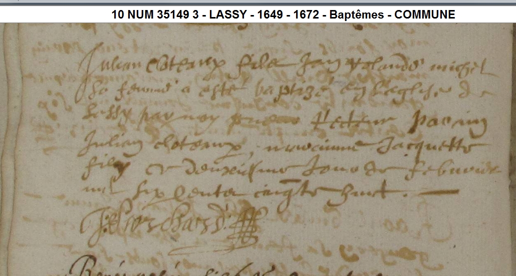Père : CLOTEAUX Julien ( < 1640 - < 1664 )