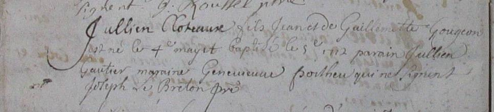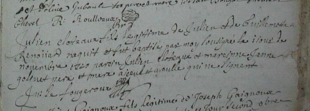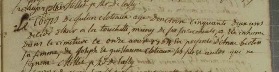 Père : CLOTEAU Julien ( ~ 1684 - <> 1769 & 1771 )