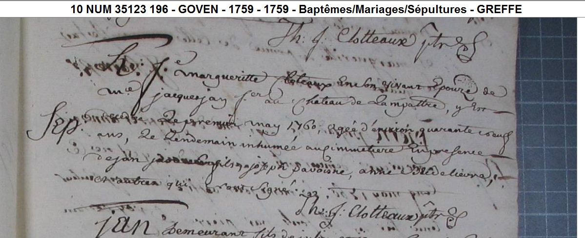 Père : CLOTEAUX Philippe ( 1688 - 1734 )