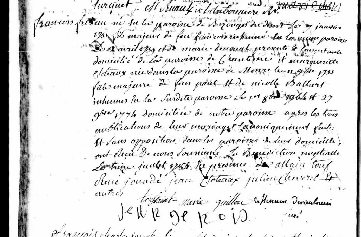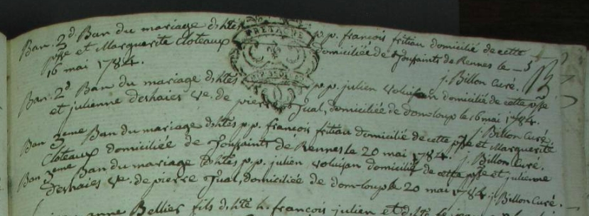 Mariage : 13 juillet 1784 à Rennes 35000 Toussaint