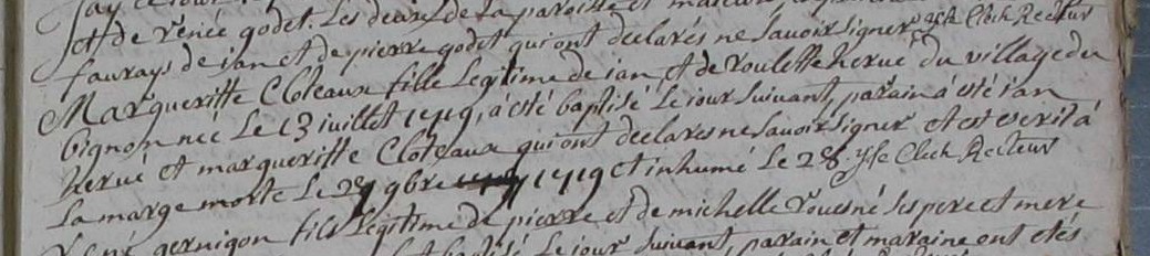 Témoin :CLOTEAUX Marguerite ( < 1706 - > 1724 )