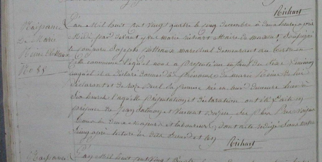 Père : CLAUTEAUX Jean ( 1787 - 1856 )