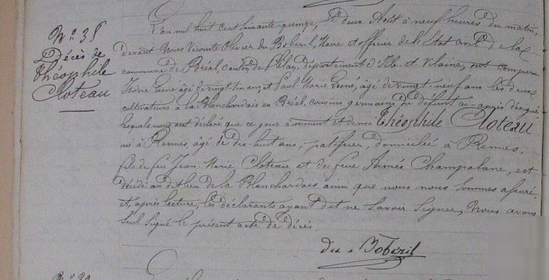 Décès : 2 août 1875 à Bréal-Sous-Montfort 35310