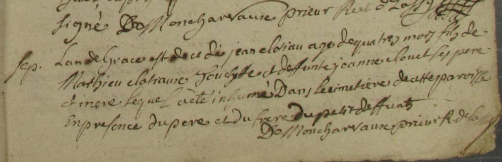 Père : CLOTEAUX Jean ( 1625 - > 1677 )