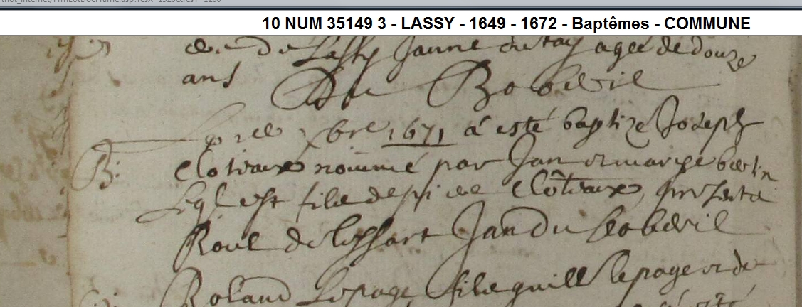 Naissance : 10 décembre 1671 à Lassy 35580