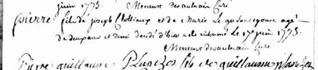 Mère : LEGAULT Marie ( < 1751 - > 1781 )