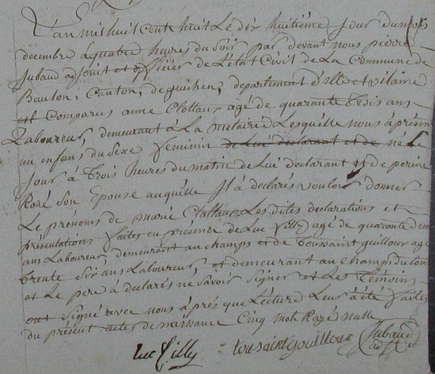 Naissance : entre 1758 et 1824 à Baulon 35580