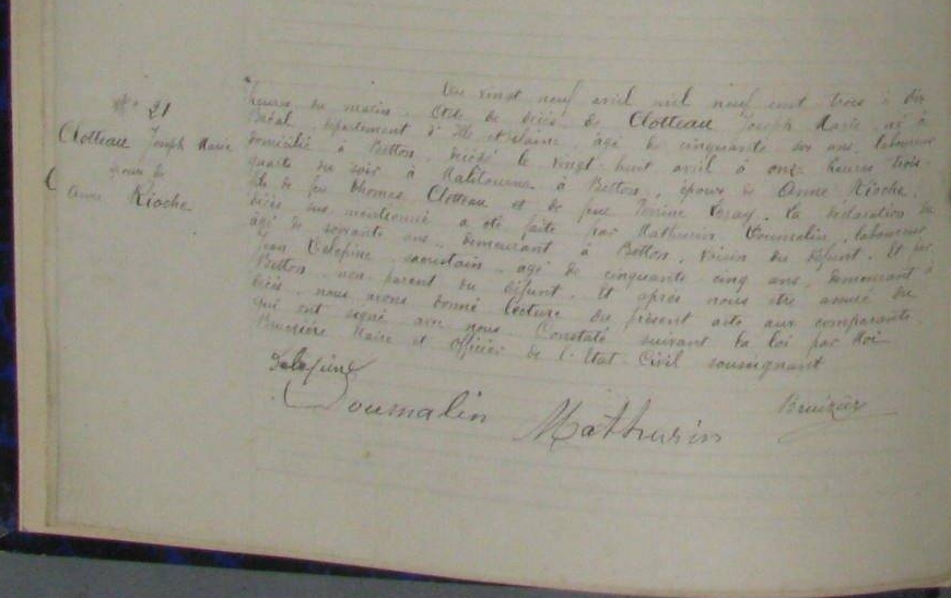 Naissance : 8 novembre 1852 à Bain-De-Bretagne 35470 Décès : après 1887 à Bain-De-Bretagne 35470