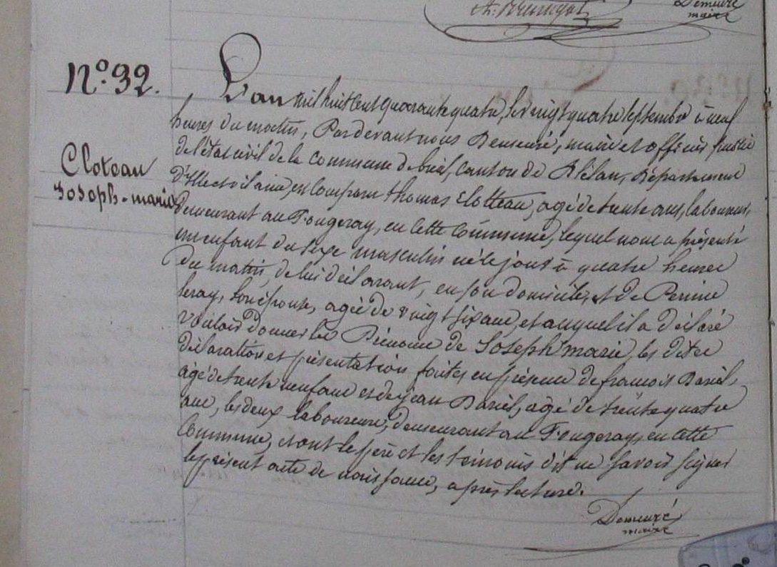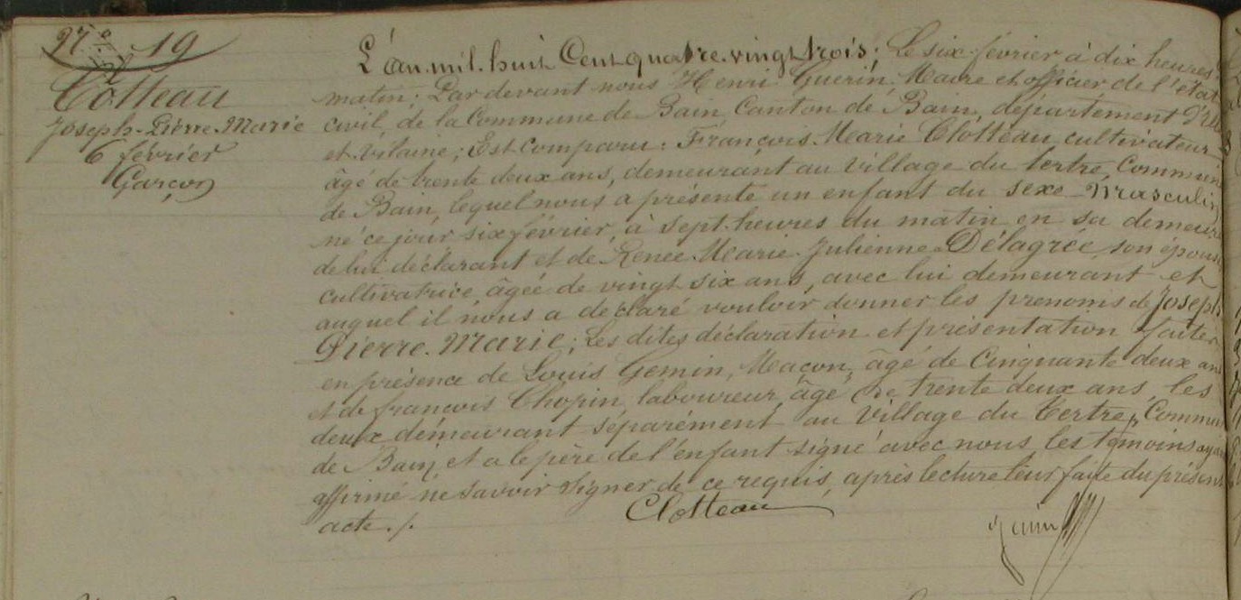 Père : CLOTTEAU Jean René ( 1819 - 1855 )