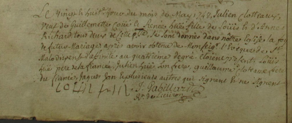 Mariage : 28 mai 1748 à Lieuron 35550